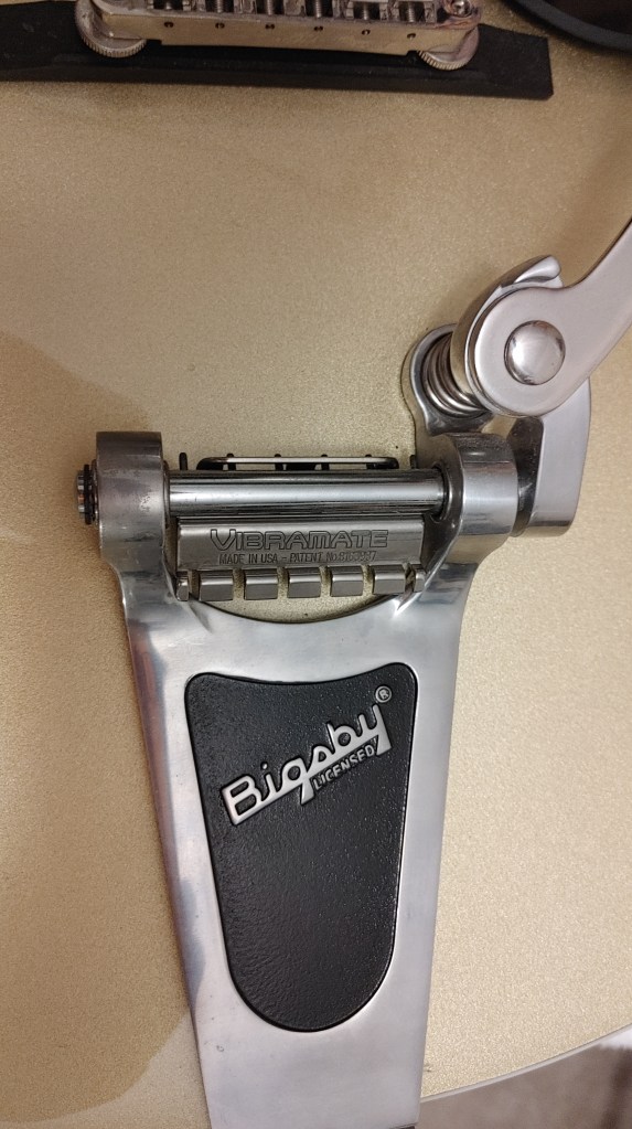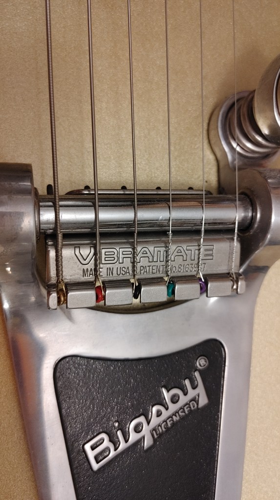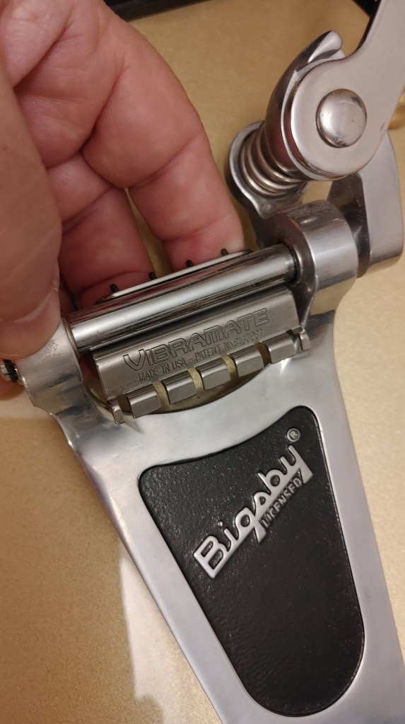 Anyone who has used a guitar equipped with a Bigsby tremolo arm knows the frustration of changing strings using the pins native to the system. First, you must use strings with standard ball ends since the hole in the conventional end is what slides over the pin on the Bigsby. Some strings use different styles of ball end, notably Fender Bullets, named for the solid ball end that’s perfectly suited for Fender’s through-the-body stringing with ferrules.