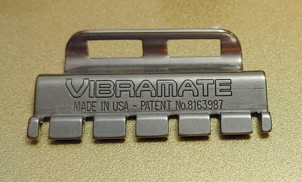Since this ingenious device from Vibramate does nothing to harm a set of guitar strings, I’ll presume it takes its name from its resemblance to a sports car spoiler. It’s a stainless steel add-on that’s completely reversible and requires no modification to your guitar or to the Bigsby trem itself.